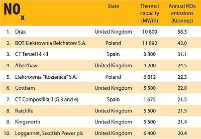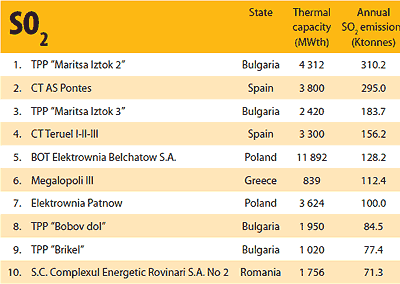 Large combustion plants are responsible for two thirds of EUs total sulphur emissions, and the coal-fired top ten polluters account for 30 per cent.