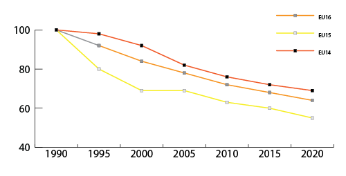 Table 3. Average annual EU27 emission reductions for different gases (source: EEA GHG data viewer).