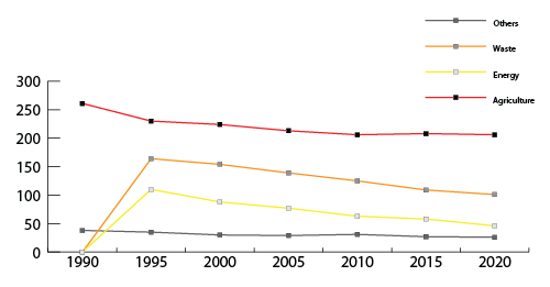 Graph 3: Evolution of EU27 methane emissions from different economic sectors