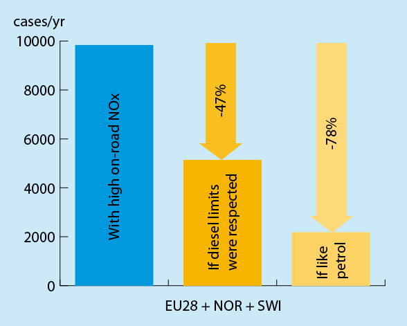Every year about 7,500 lives could have been saved in the EU if diesel cars had emitted as little NOx as petrol cars.