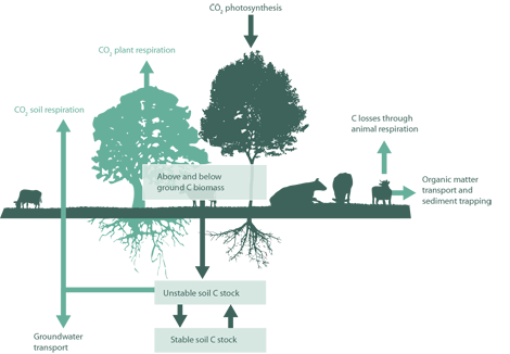 Land-based ecosystems can be a sink of carbon when the pace of CO2 fixation through photosynthesis exceeds respiration and organic matter oxidation. However, if the opposite happens the process will be reversed and the ecosystem will be a source of carbon dioxide. Any carbon sequestrated can easily return to the atmosphere, if land is overgrazed, trees felled, biomass burned, or carbon-rich peat soils are drained or ploughed up. Another important aspect of carbon sequestration is that the process will reach equilibrium after a while. This happens when the amount of carbon sequestrated equals the amount released through different degradation processes. The equilibrium is different for different ecosystems and if the land use is changed it may take some years, decades or even a century before a new equilibrium is reached. There is a risk of presenting unrealistic figures when the high levels of carbon sequestration that can sometimes be observed when a baseline condition for an ecosystem is altered are extrapolated as a general figure for all similar ecosystems over a long period of time.