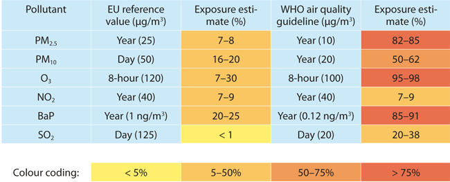 Table1. Percentage of EU urban population exposed to air pollutant concentrations above EU and WHO reference levels (2013–2015).