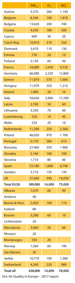Table 2. Estimates of premature deaths attributable to exposure to PM2.5, O3 and NO2 in 41 European countries.