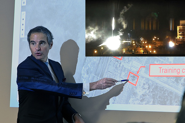 During the night of 4 March 2022, buildings at the Zaporizhzhia nuclear power plant in Ukraine were shelled by Russian tanks, resulting in a fire in the administrative building. Two of the three operating reactors were shut down. (The attack has been analysed in detail by NPR.)