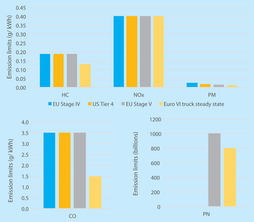Note: Steady state tests for trucks and engine tests for NRMM engines are different. PN standard only introduced for EU Stage V and Euro VI.
