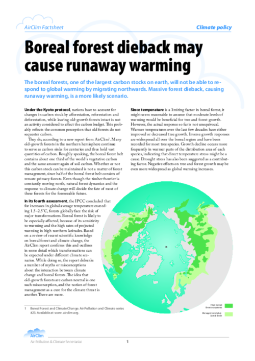 Boreal forest dieback may cause runaway warming