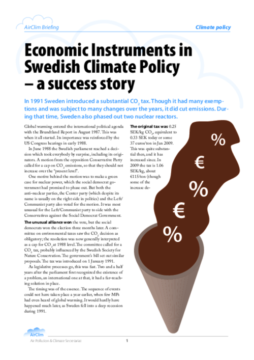 Economic Instruments in Swedish Climate Policy – a success story