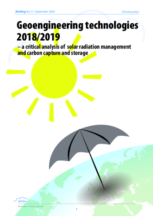 Briefing 17 Geoengineering technologies 2018/2019 Author Fredrik Lundberg, Publish date 2020 PDF briefing-17-geoengeneering-technologies-2018-2019.pdf – a critical analysis of solar radiation management and carbon capture and storage