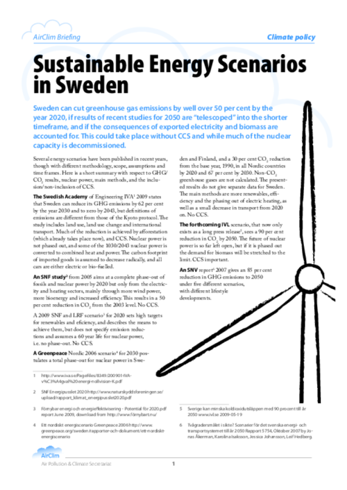 Sweden can cut greenhouse gas emissions by well over 50 per cent by the year 2020, if results of recent studies for 2050 are “telescoped” into the shorter timeframe, and if the consequences of exported electricity and biomass are accounted for. This could take place without CCS and while much of the nuclear capacity is decommissioned.