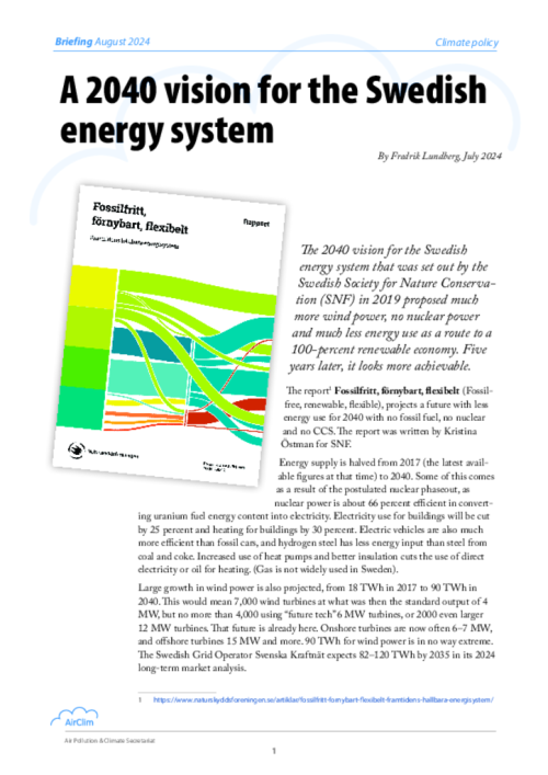 Vision for the Swedish energy system Author Fredrik Lundberg, Publish date 2024 PDF briefing_2040-vision-for-the-swedish-energy-system.pdf b